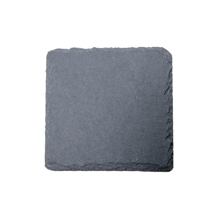 4" x 4" Square slate coasters with rough-cut edges and a natural look. These coasters can be laser engraved at a very high resolution making them a versatile gift, and a wonderful addition to any home décor.