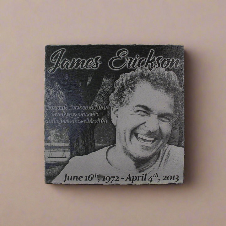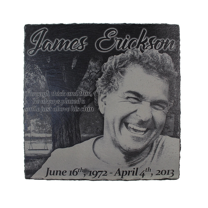 A square slate plaque that features a clean-cut edged side and a rough-edged side for versatility in your laser engraving applications.