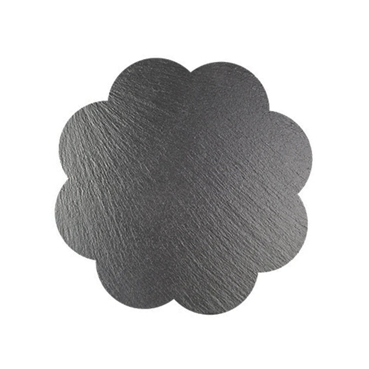 A 10" x 10" flower-shaped slate plaque that features a clean-cut edged side and a rough-edged side for versatility in your laser engraving applications.