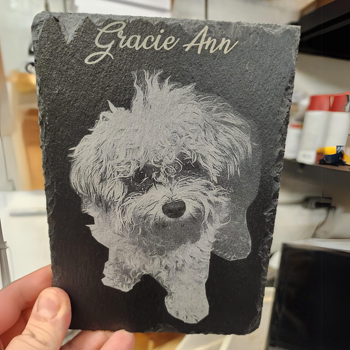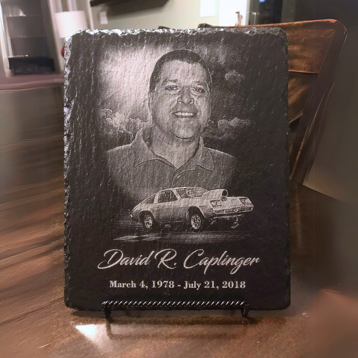 A rectangular slate plaque that features a clean-cut edged side and a rough-edged side for versatility in your laser engraving applications (engravings are not included in prices):